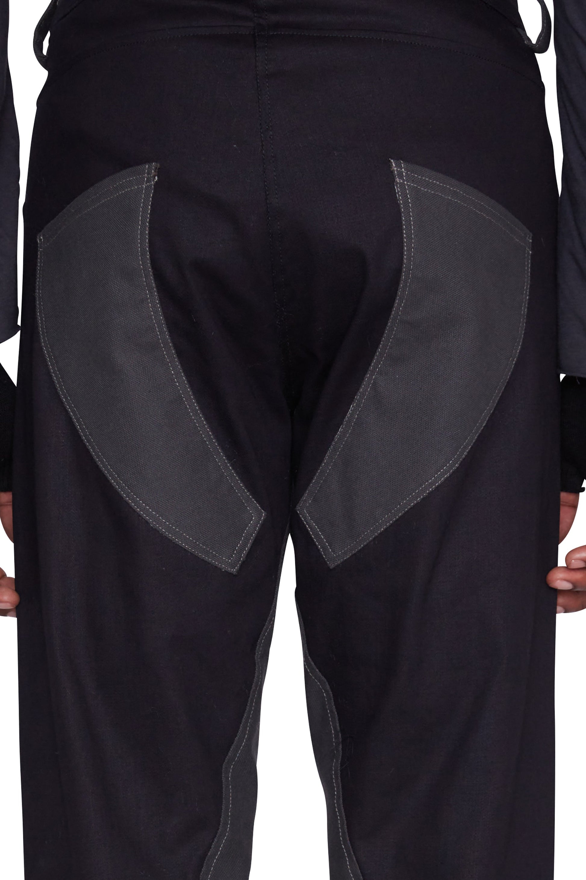 X: Jeans aus Canvas-Baumwoll-Denim im Moto-Stil mit Polsterung und Kontrasteinsätzen an Oberschenkeln und Bein, 4-Knopf-Druckknopfverschluss vorn und Gesäßtaschen im Moto-Stil.