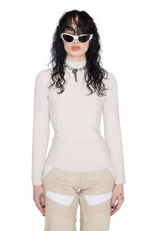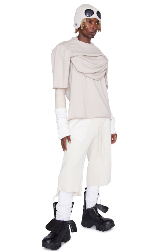 Pantalones cortos con paneles de lona acanalada (blanco)
