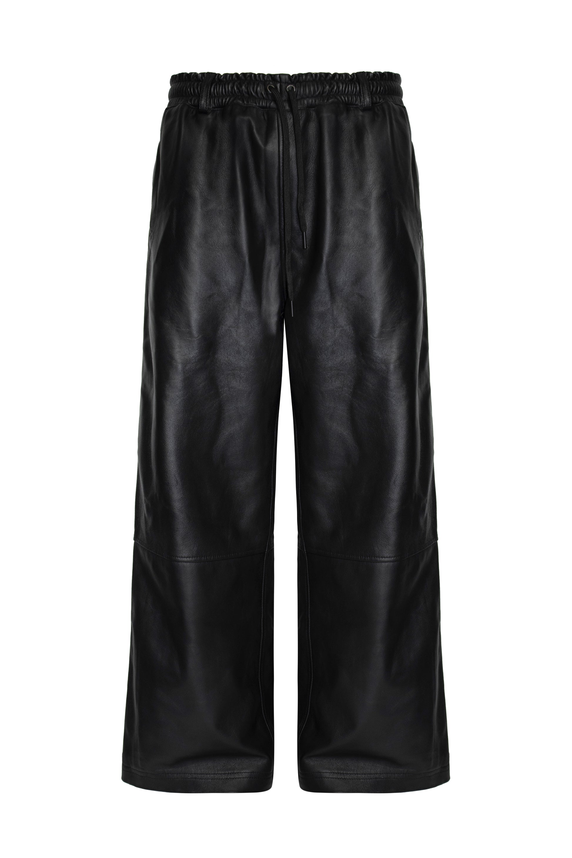 The "Genesis" Leather Sweatpant represents the first chapter in a new language of comfort and structure — a meditation on origin and transformation. Crafted in supple Nappa Leather, its silhouette redefines the Sweatpant archetype with a fully lined lightweight moisture-wicking jersey interior, flared leg opening, functional belt loops, and a drawstring waist that bridges discipline with ease.